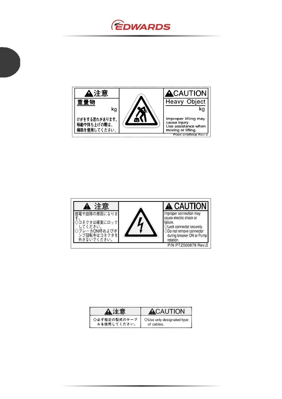 Edwards STP-XF803 Series - Heavy Product Caution Label; Connector Caution Label; Caution Label