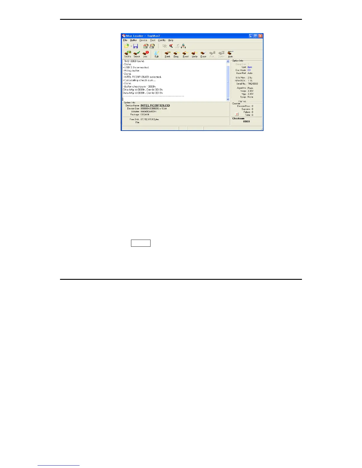 In the software menu, Chip (in socket) MFG (manufacturer) ID and DATA (in