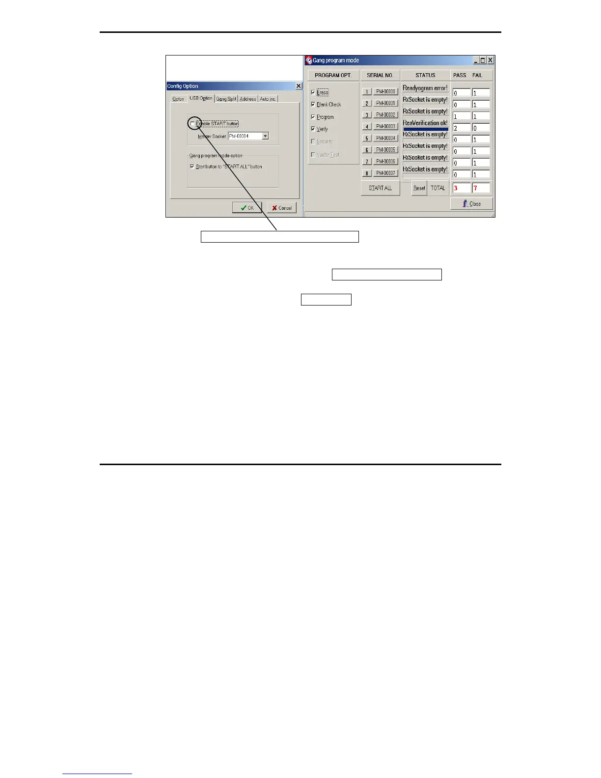 key in Gang program. The START ALL button make all socket If the box is not