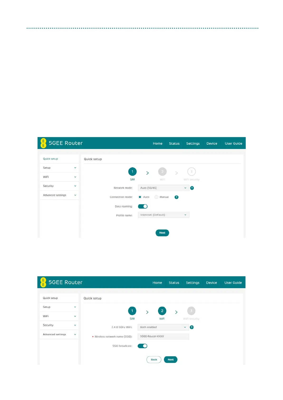 On the WiFi page, you can change the 2.4 and 5 GHz Wireless network