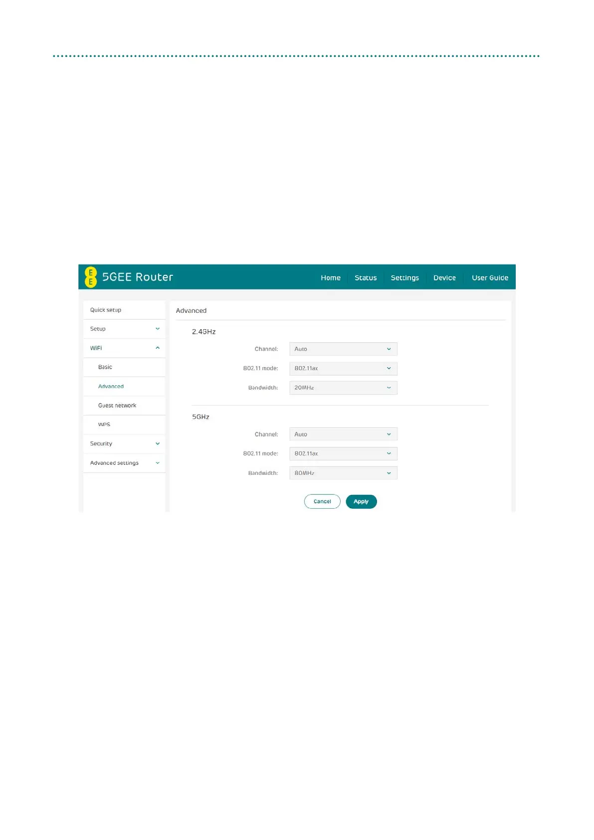 • Channel: Select Auto and the 5GEE WiFi will select the best channel for