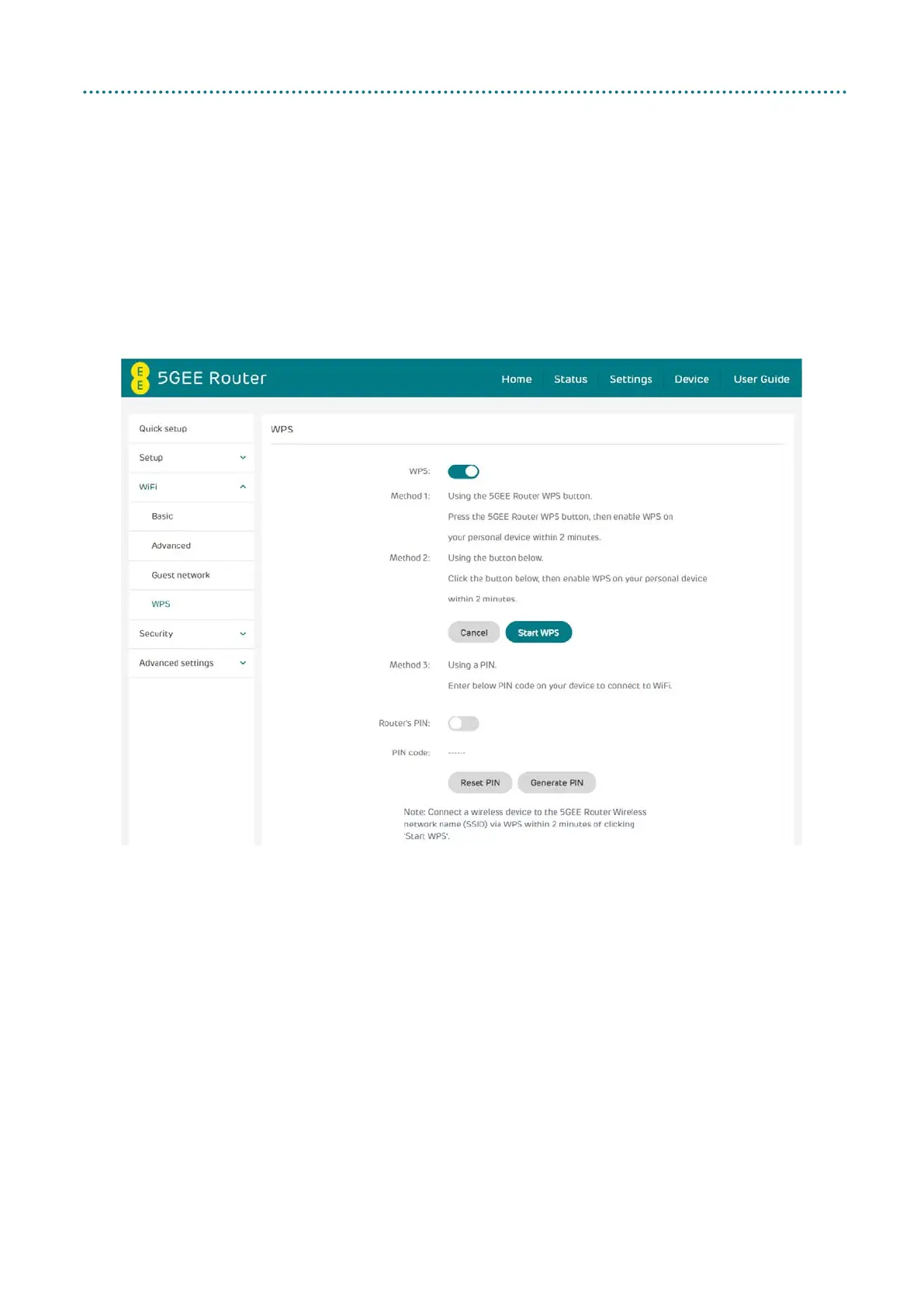 WPS: Enable WiFi Protected Setup (WPS) and click Start WPS to start