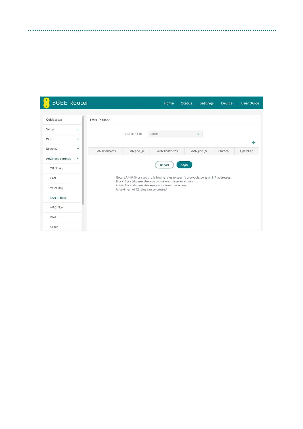 EE 5GEE - 5.12 LAN IP Filtering