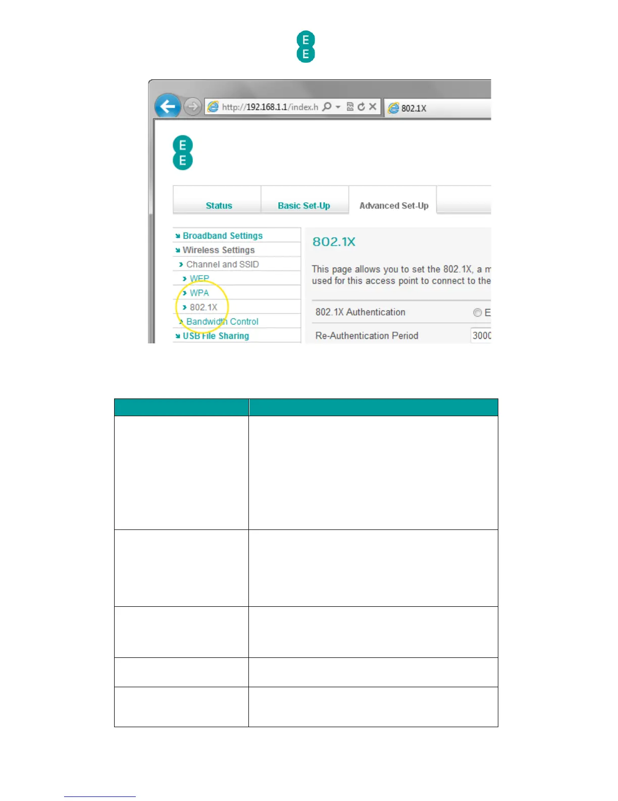 Description of 802.1x settings