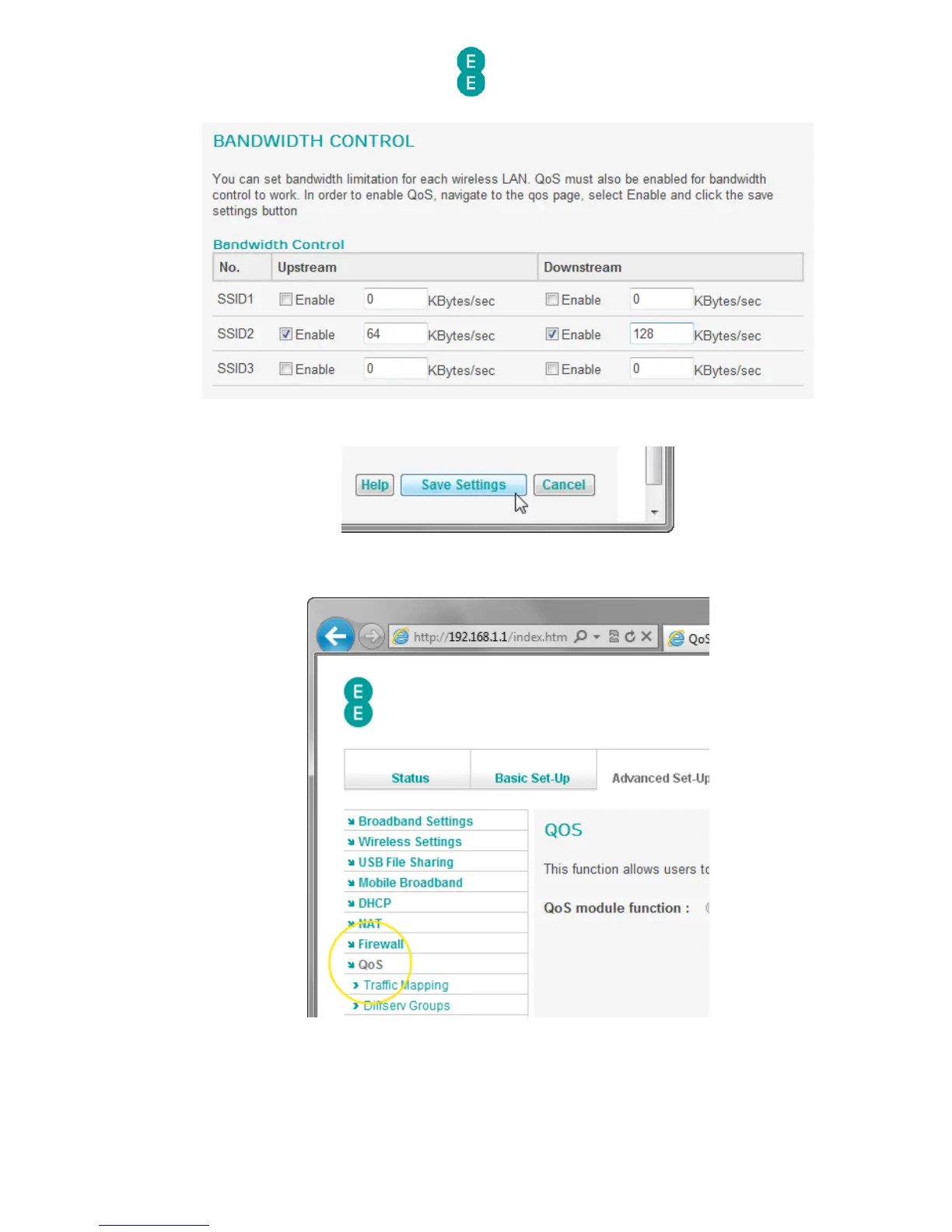 10. Set the ‘QoS module function’ option to ‘Enable’ and click Save Settings: