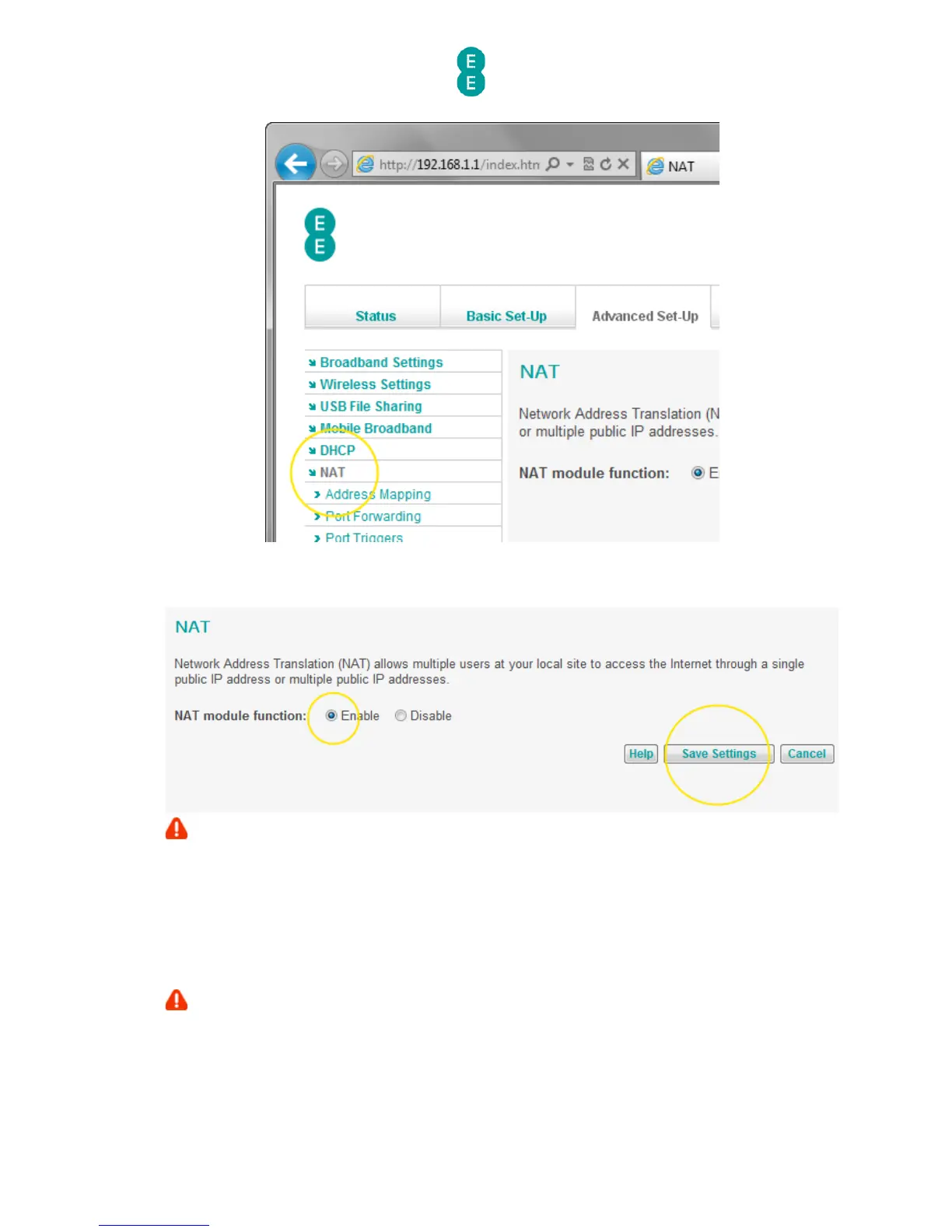 option you want on the NAT page (in this example, we are selecting ‘Enable’) and