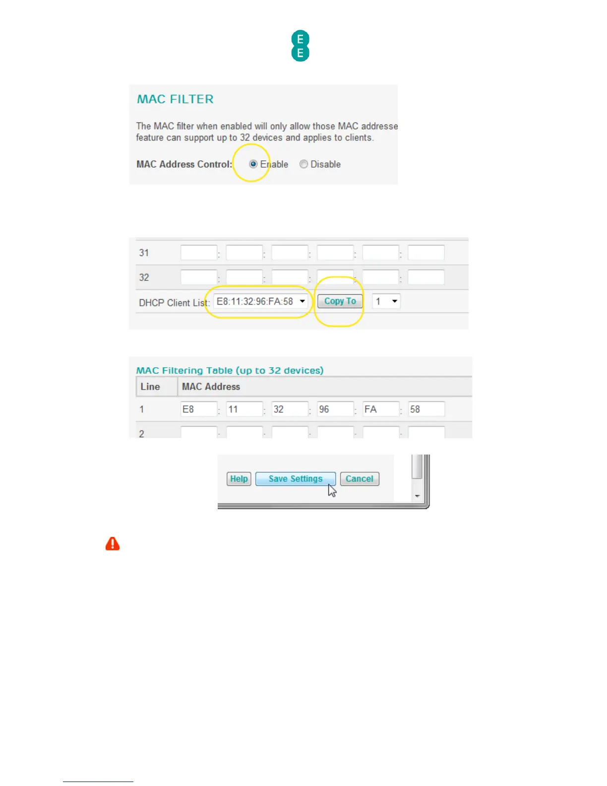7. The easiest way to do this is to scroll to the bottom of the MAC filter page, locate your