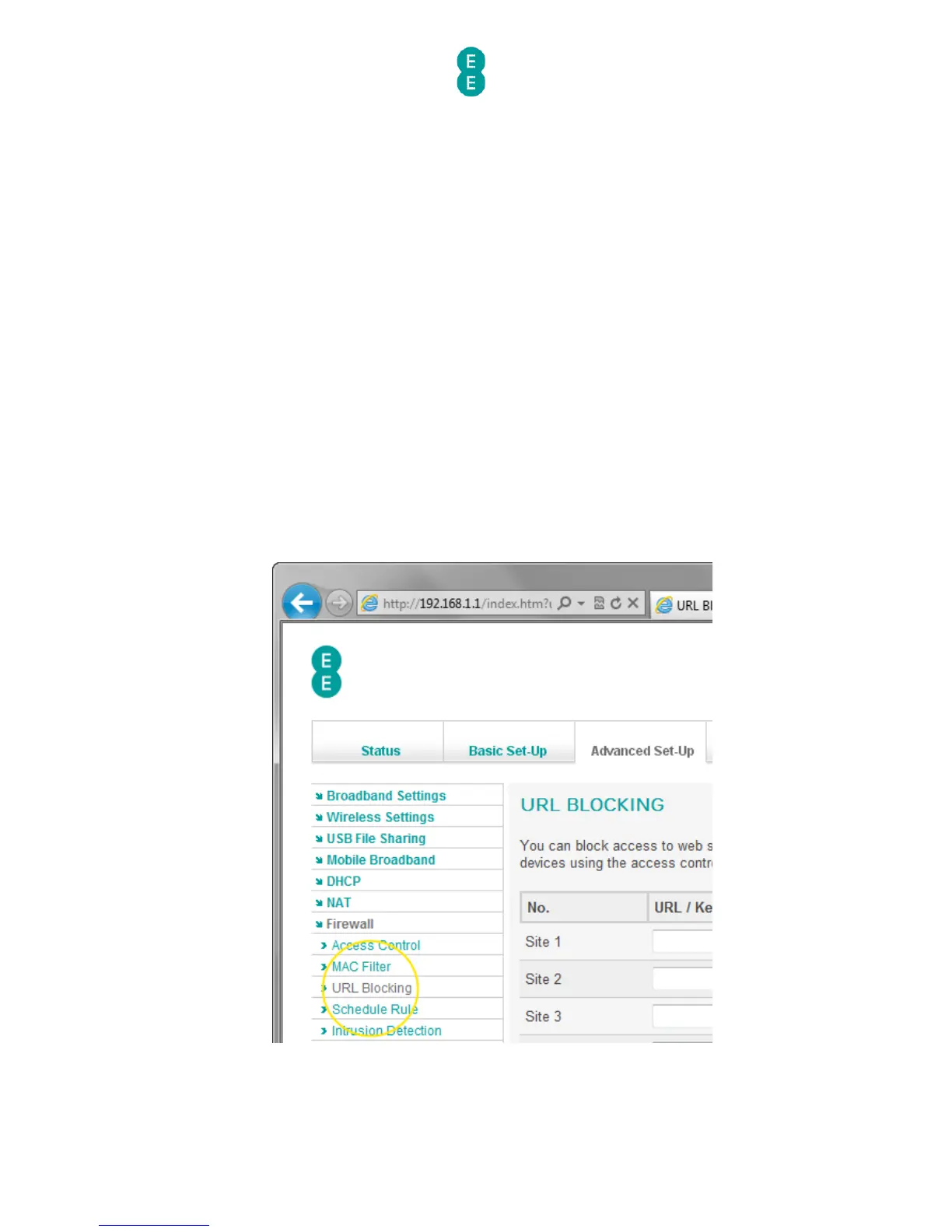 URL Blocking is then activated by creating an access control rule on the Advanced Set-Up