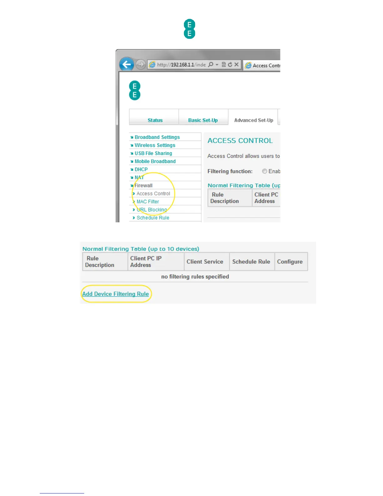 9. Click the add device filtering rule link: