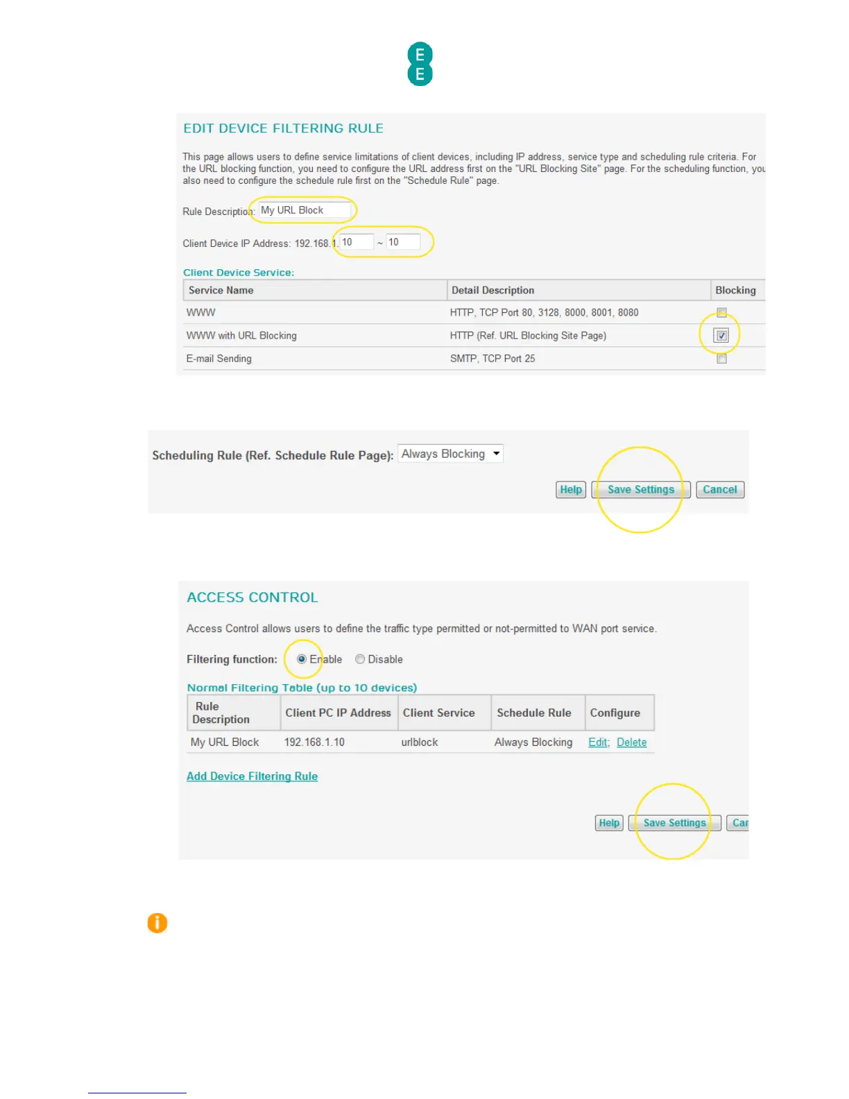 If you want to remove the URL Blocking rule at any time, navigate back to the Access