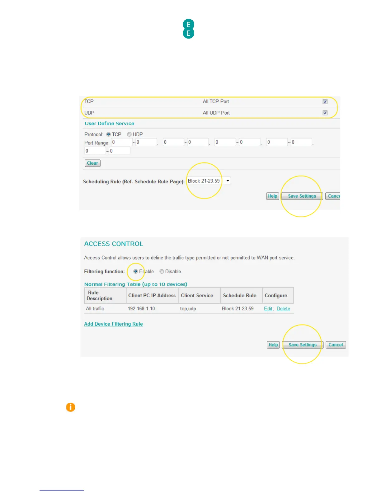 19. Select the ‘Enable’ option for the ‘Filtering function’ the Access Control page and click