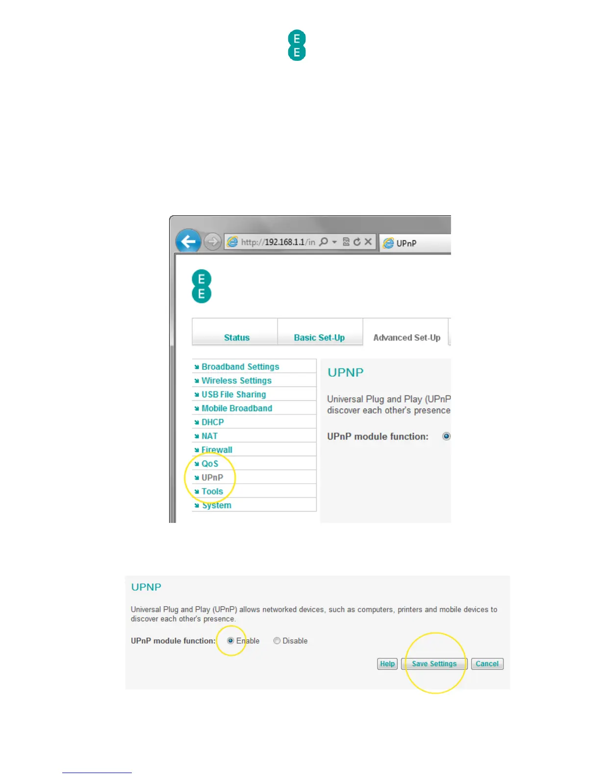 switch UPnP on (this is the default setting) or ‘Disable’ to switch off UPnP – in this