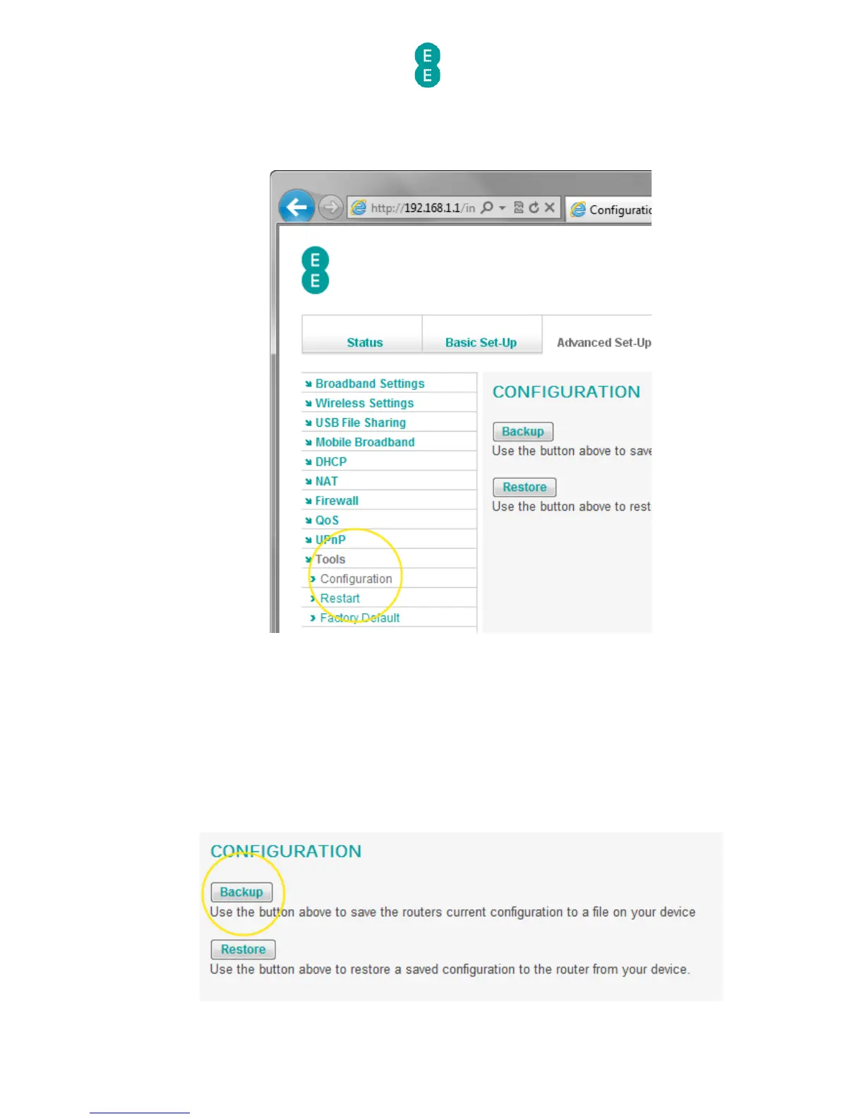 To back up the Bright Box router configuration settings in a file that you can restore at any