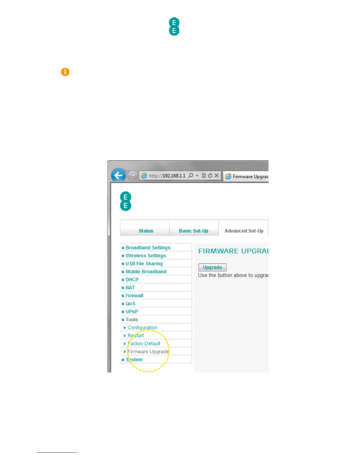 To upgrade the Bright Box router from a firmware file supplied by EE: