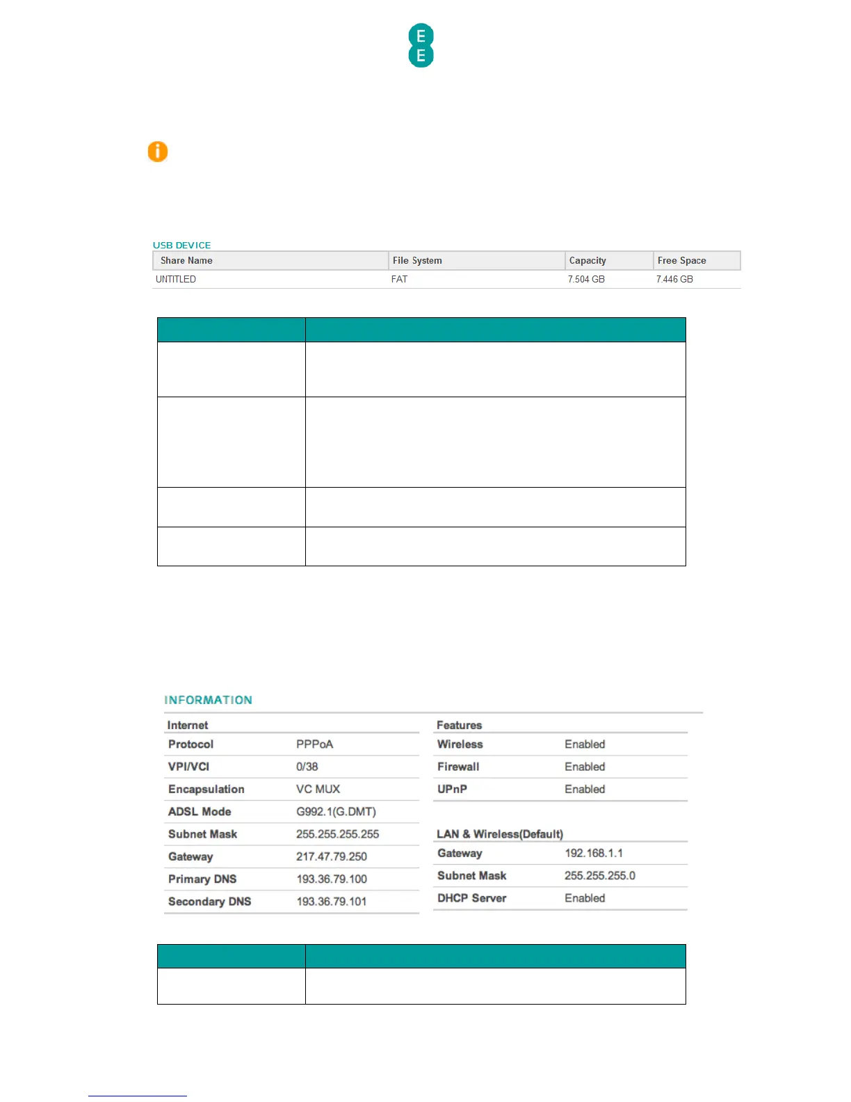In this section you can see details of a storage device (such as a USB hard drive) connected