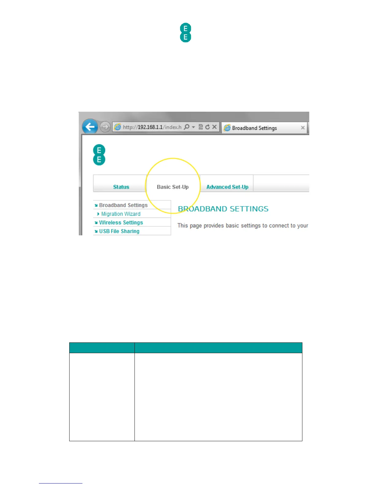 This page contains basic settings to connect to your EE broadband service. The Broadband