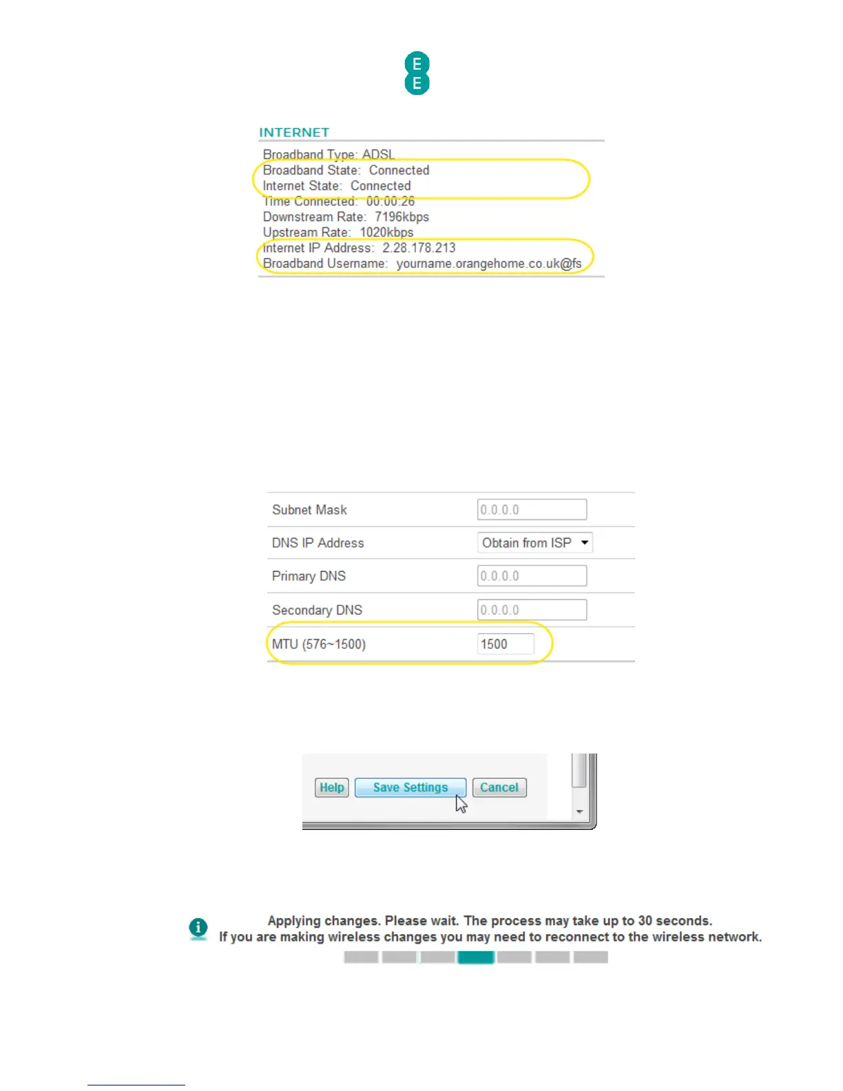 The Maximum Transmission Unit (MTU) value is optimised on the Bright Box router for the EE