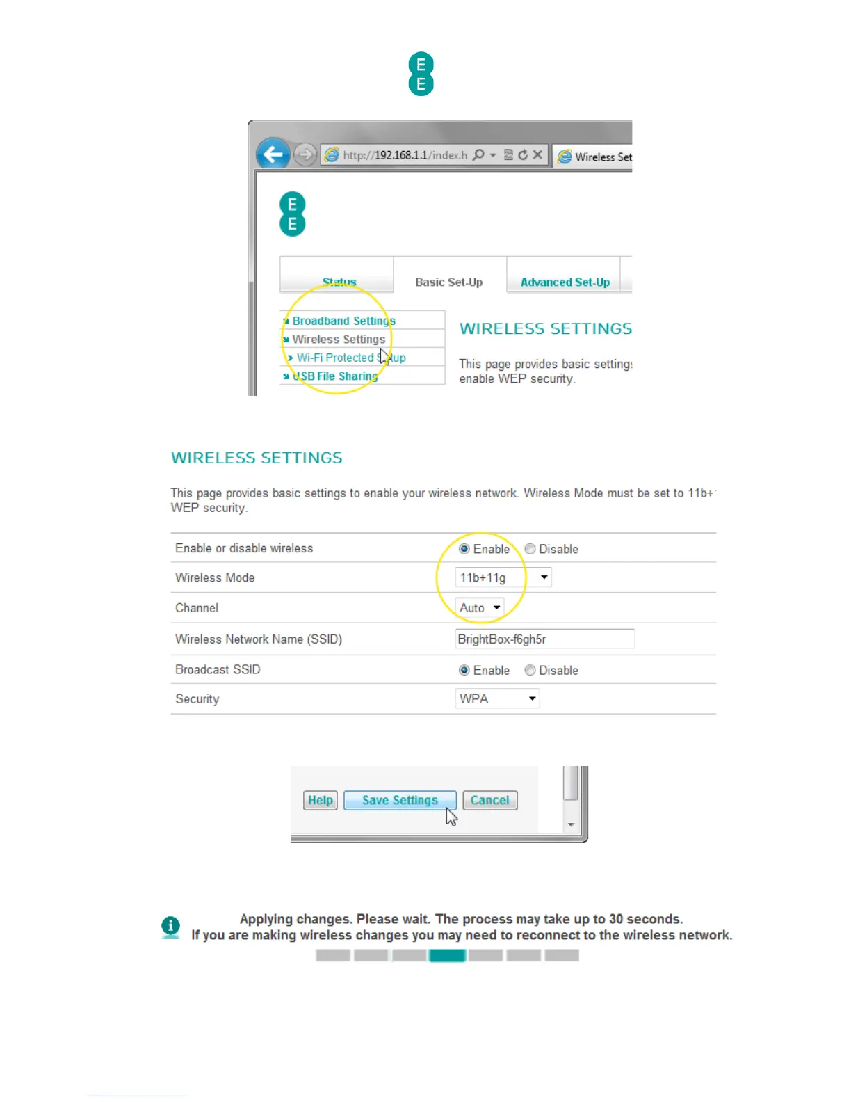 the new wireless mode from the list. In this example we will change to ‘11b+11g’: