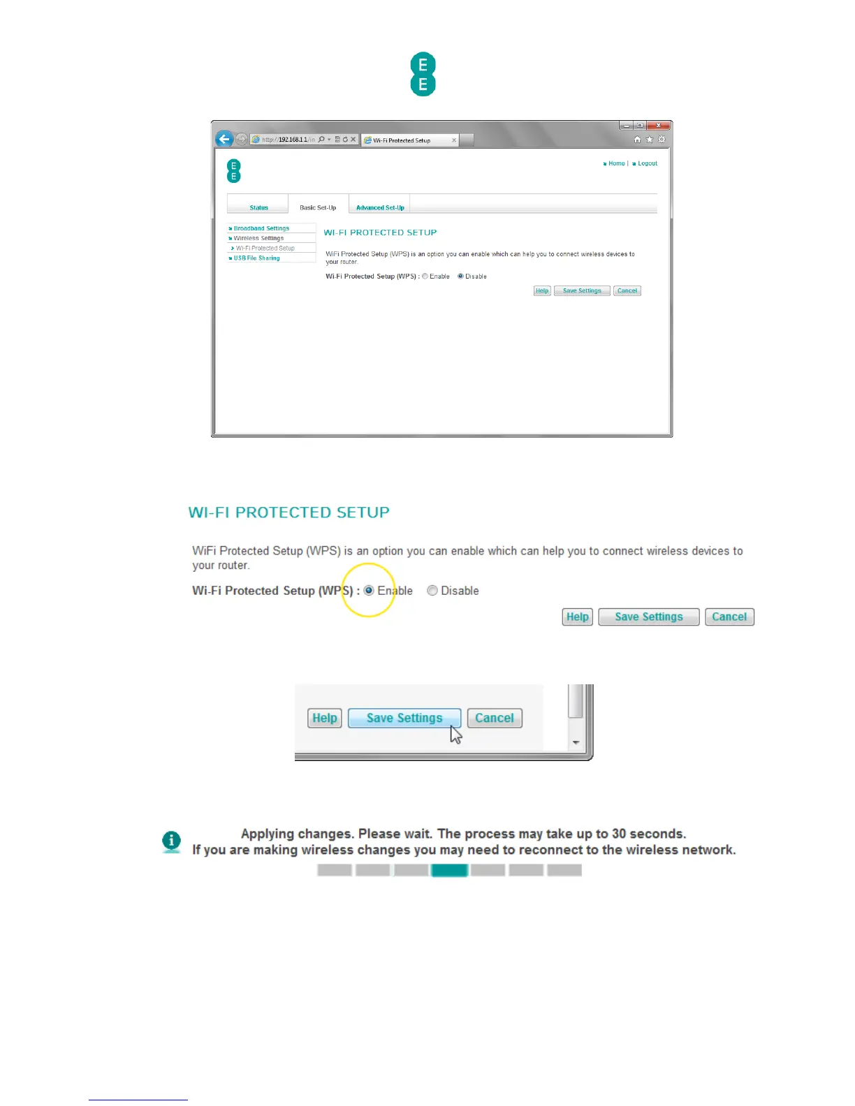 5. In the ‘Wi-Fi Protected Setup (WPS)’ field select the option you wish to use. In this