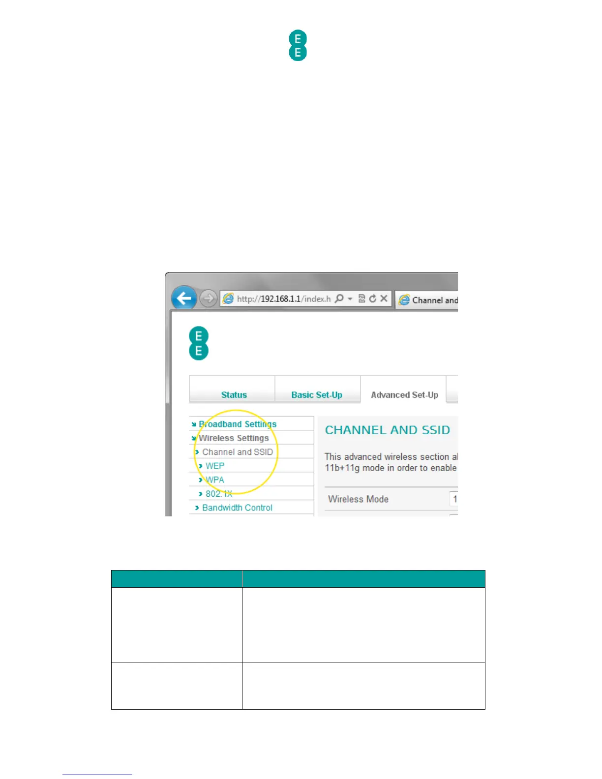 Description of Channel and SSID settings