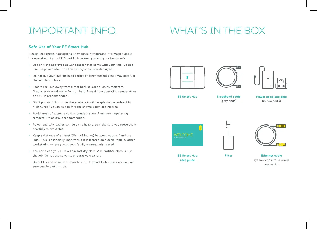 EE Smart Hub - Important Information and Box Contents; Safe Use of Your EE Smart Hub; Whats Included in the Box