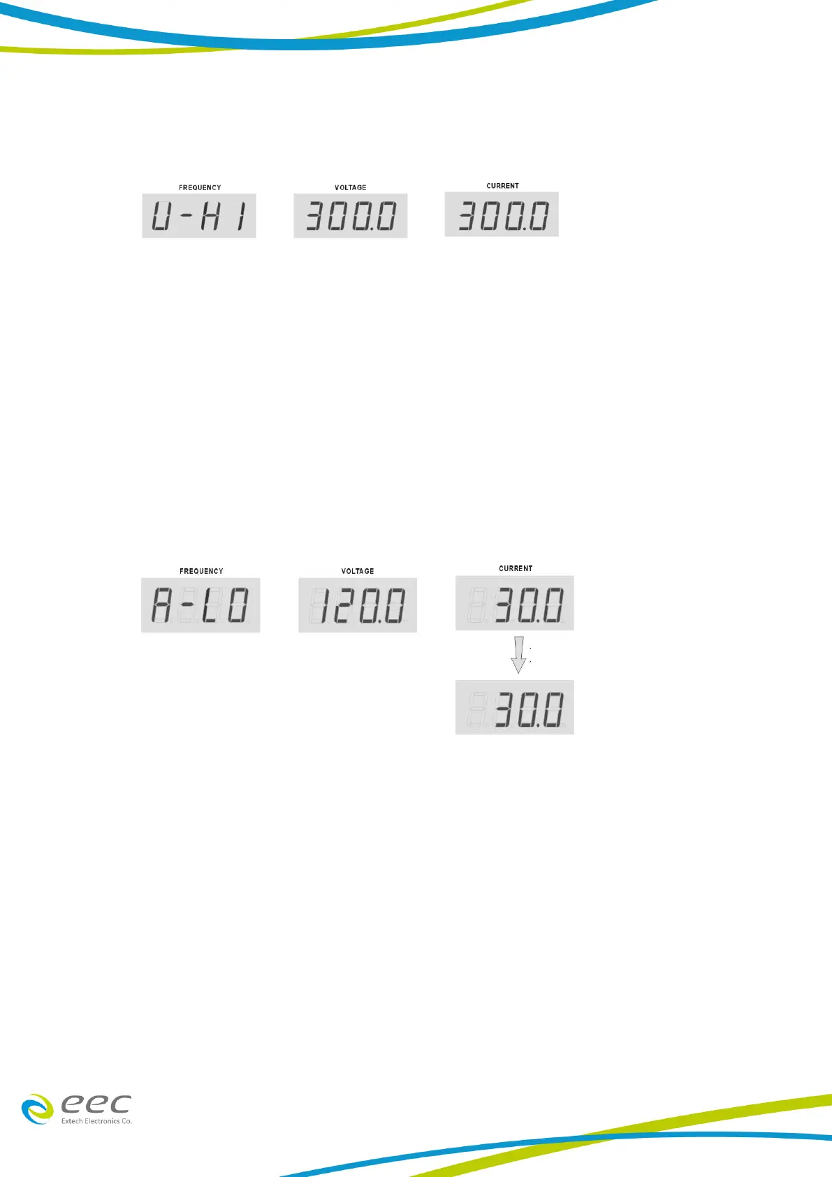5. Low Range Current (A-LO) Calibration: Press “︿” or “﹀” key from the Frequency display
