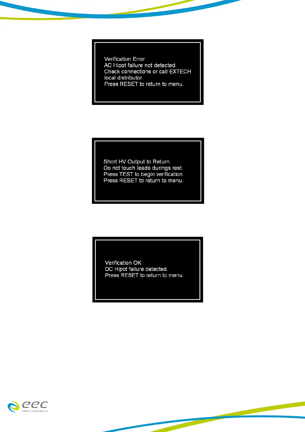 Follow the instructions on the screen. Press the Test button on the front panel of the instrument