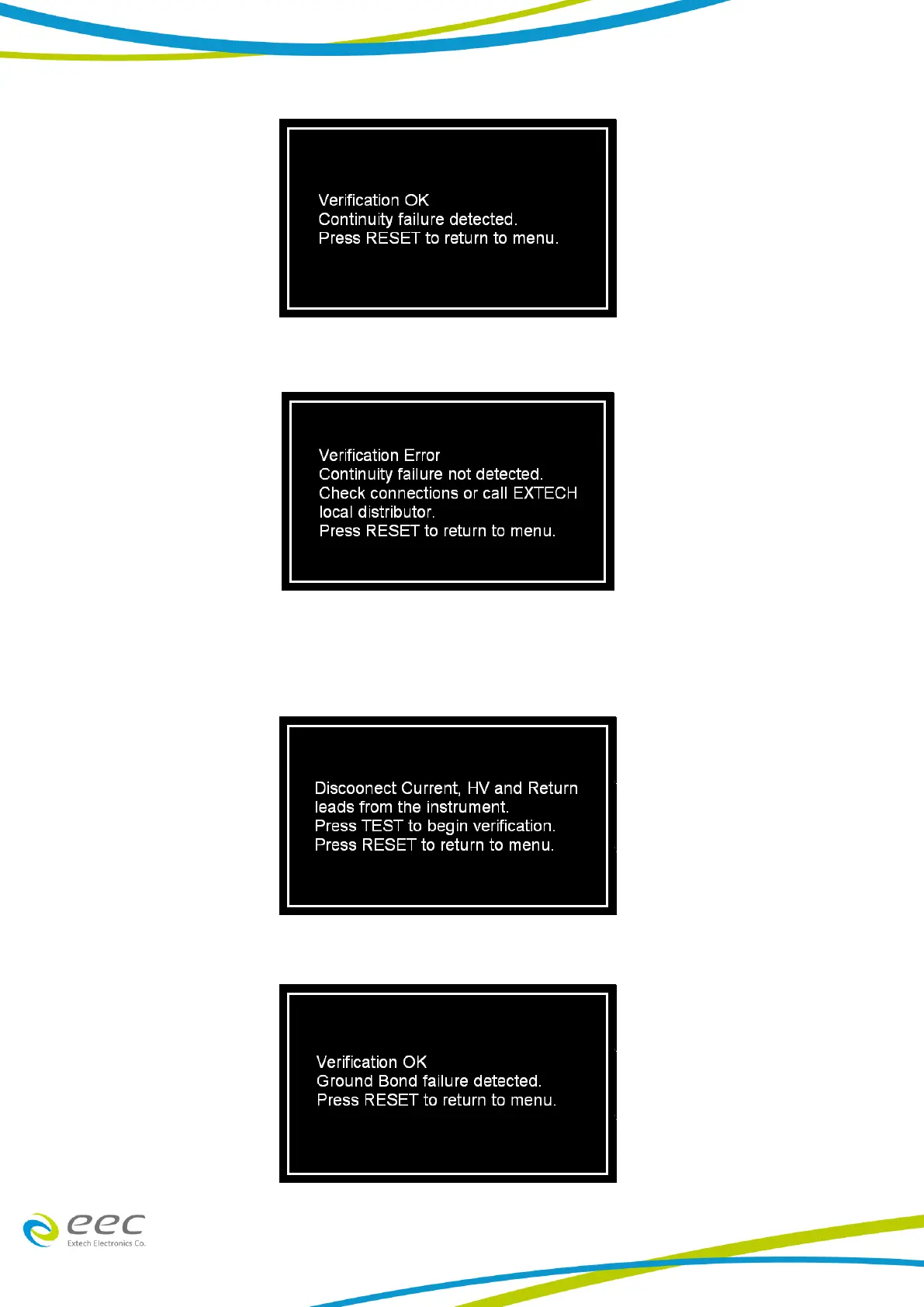 Follow the instructions on the screen. Press the Test button on the front panel of the instrument