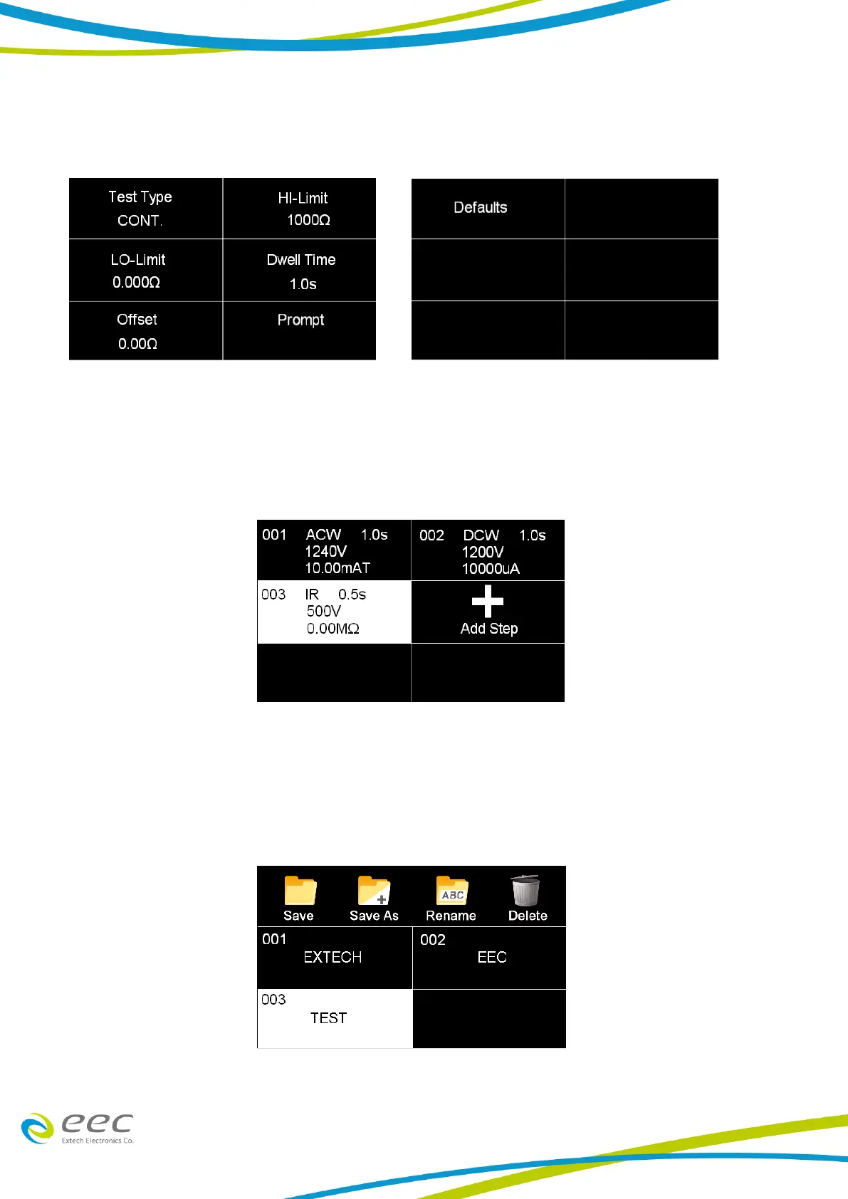 Once multiple test files have been programmed and saved the user can edit these files from the