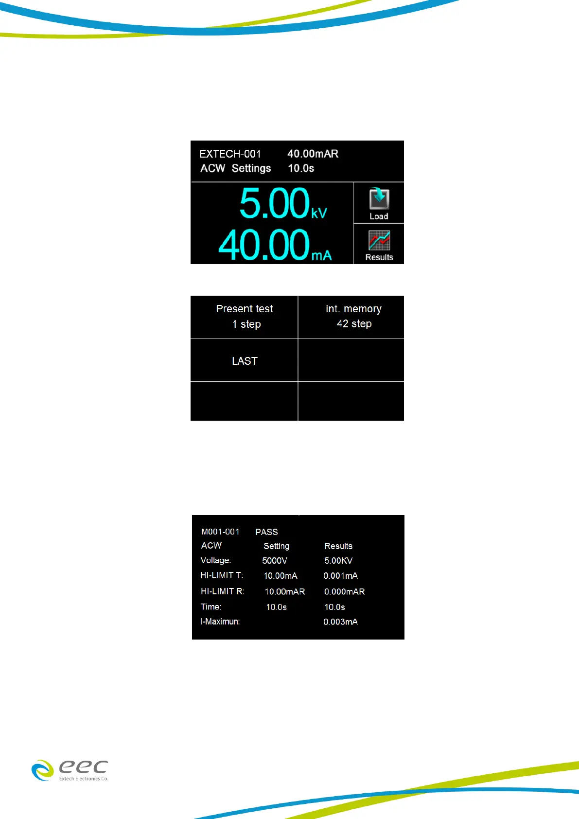 The Results screen allows you to view the results of the last test step the instrument performed