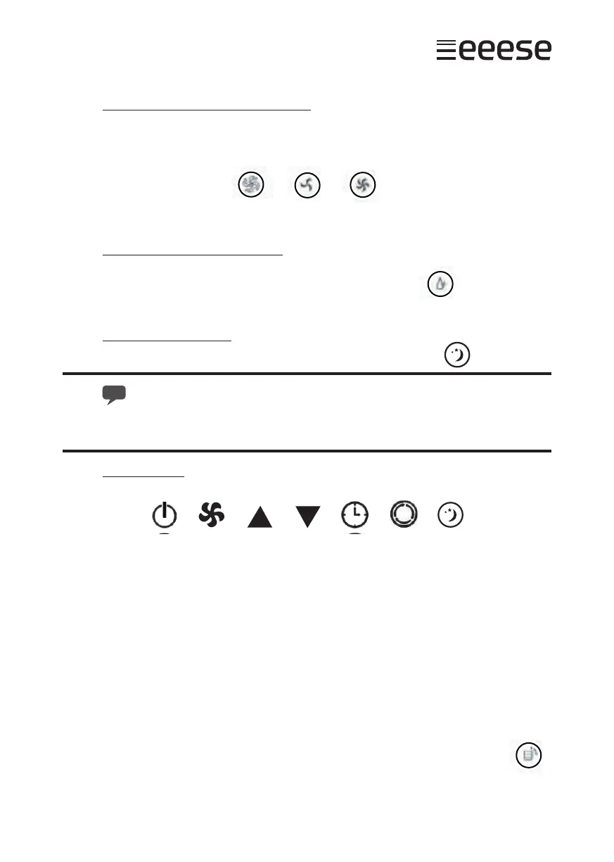 på F for at skifte mellem køle-, blæse- og augterfunktionen. Timeren aktiveres ved at tryk-