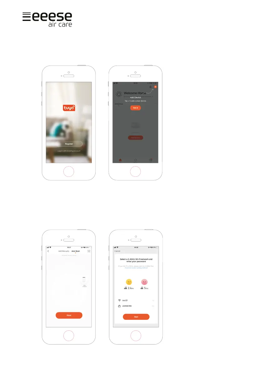 Follow the guide to select the device to be congured, then enter the WiFi password.