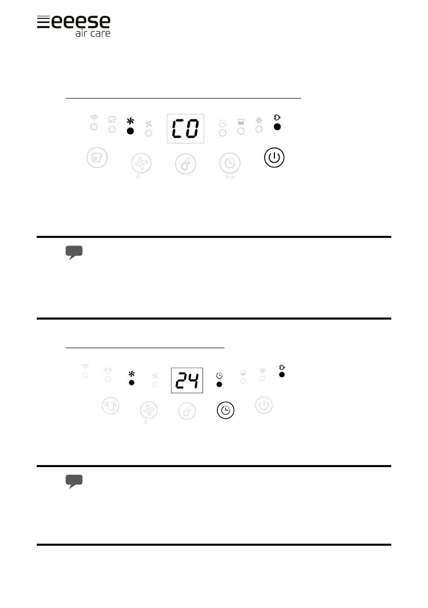 Standaard draait het toestel op manuele continue ontvochtiging met hoge ventilatorsnel-