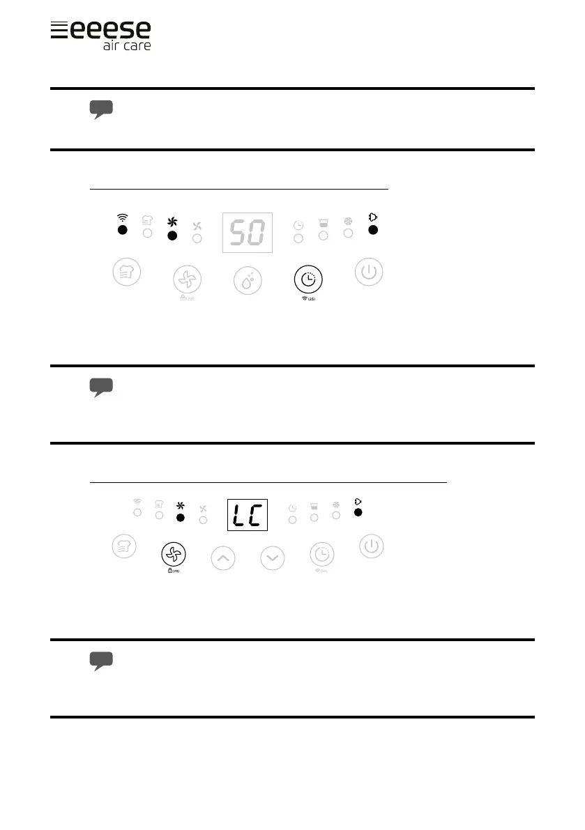 Druk 2 sec. op de ventilator snelheidsknoop om alle knopen met een piepend geluid te