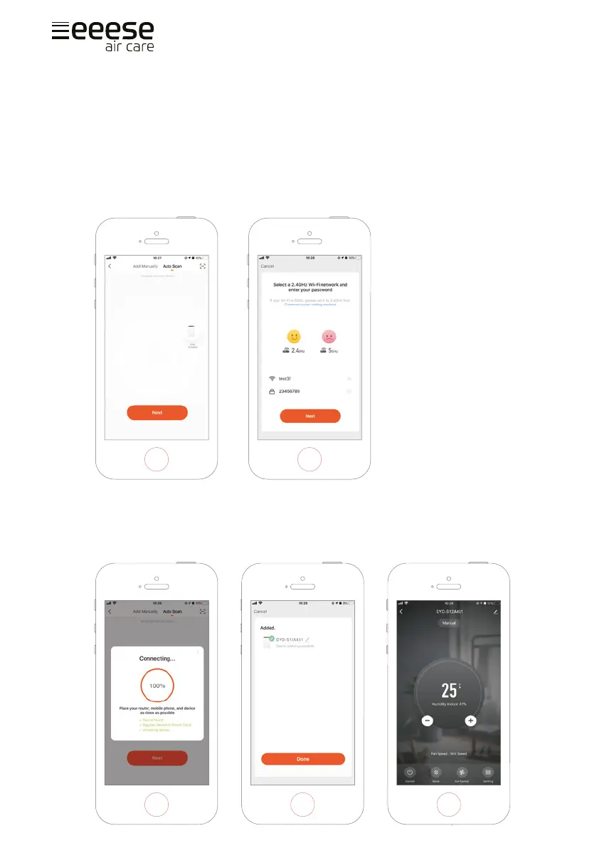 Voltooi de aansluiting om de luchtontvochtiger in te stellen met de APP.