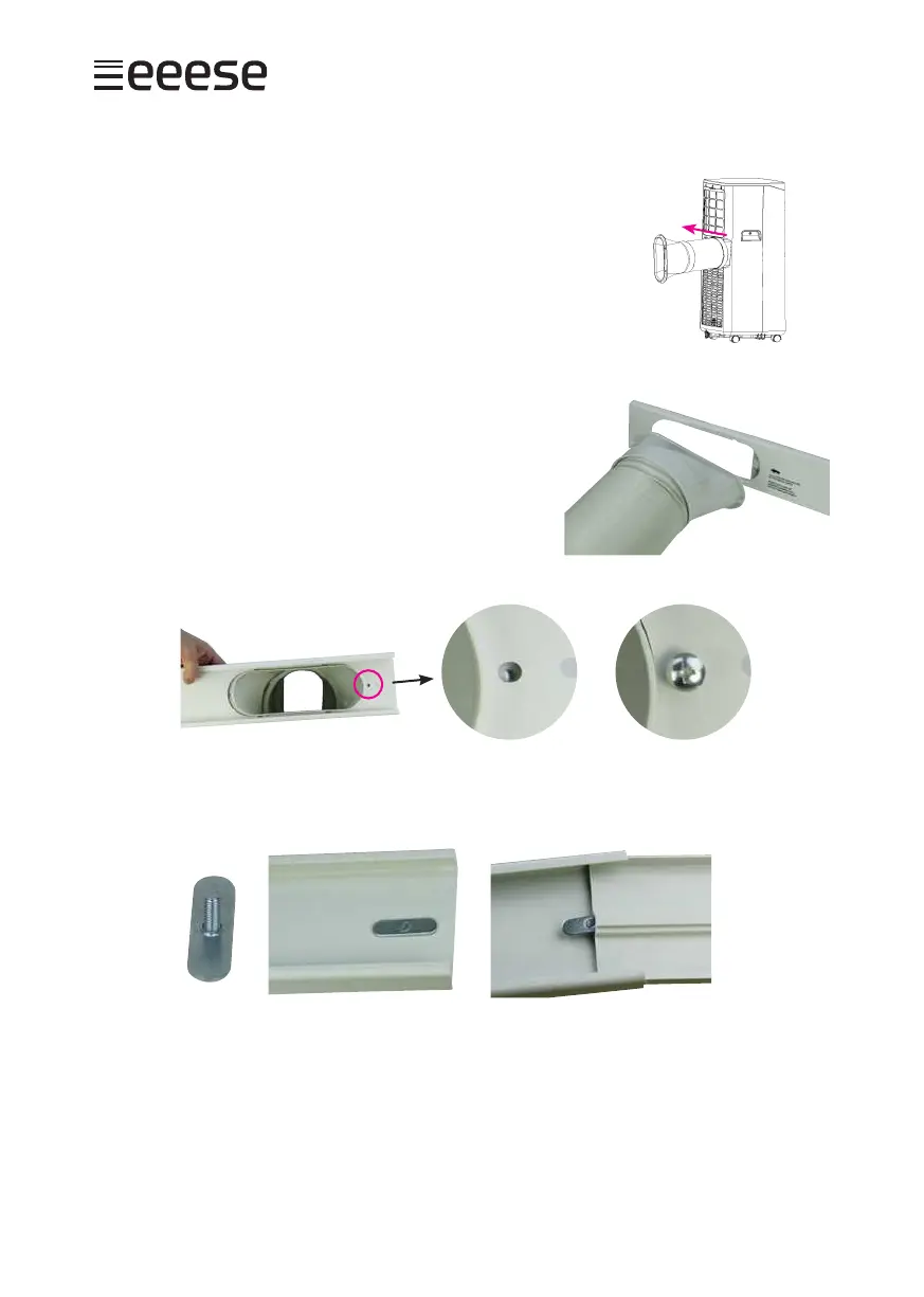 För det hopsatta röret C genom skenan på baksidan av enheten,