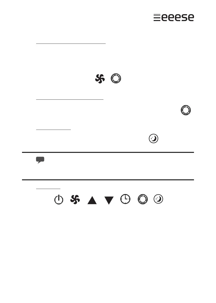F för att växla mellan kylning, äkt- och avfuktarfunktionen. Timern aktiveras genom att