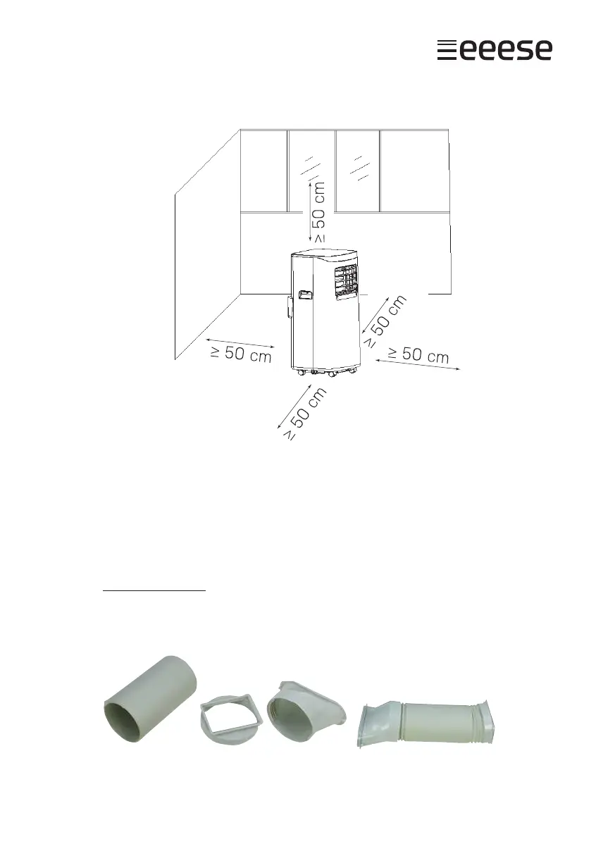 • Sørg for at avfukteren har sikker avstand på minst 50 cm fra vegger og møbler.