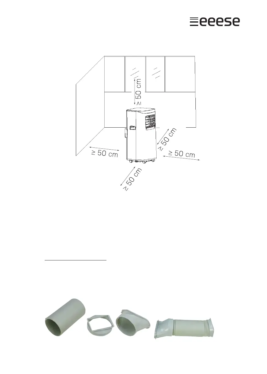 • Stellen Sie sicher, dass sich der Luftentfeuchter in einem sicheren Abstand und min-