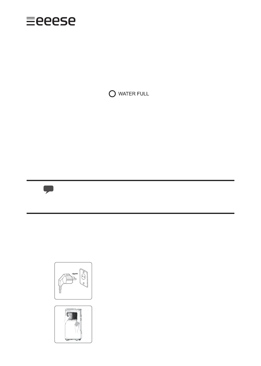 Wanneer het waterreservoir vol is, stopt Kaya met ontvochtigen en de watertank-indicator