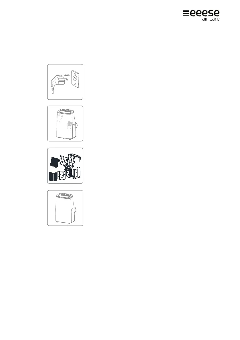 Schalten Sie das Gerät aus und ziehen Sie es vor der Reini-