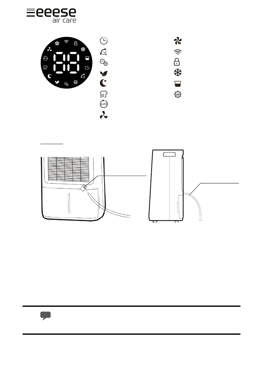 2. Connect a suitable drain hose (14mm inner diameter) to the drainage outlet.