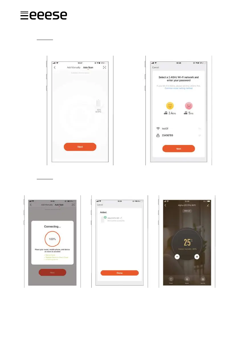 Følg anvisningen for å velge enheten som skal kongureres. Tast så inn WiFi-passordet.