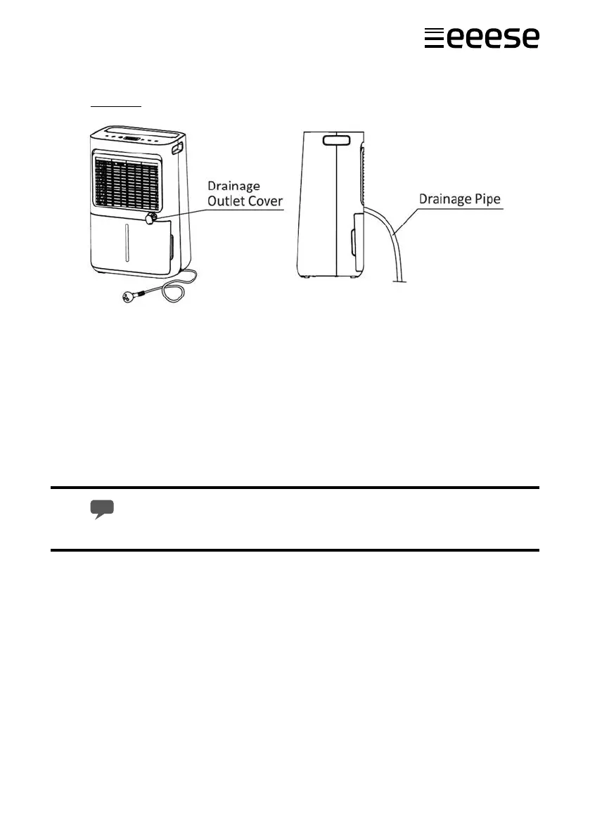 3. Connect a suitable drain hose (14mm inner diameter) through the drainage outlet.