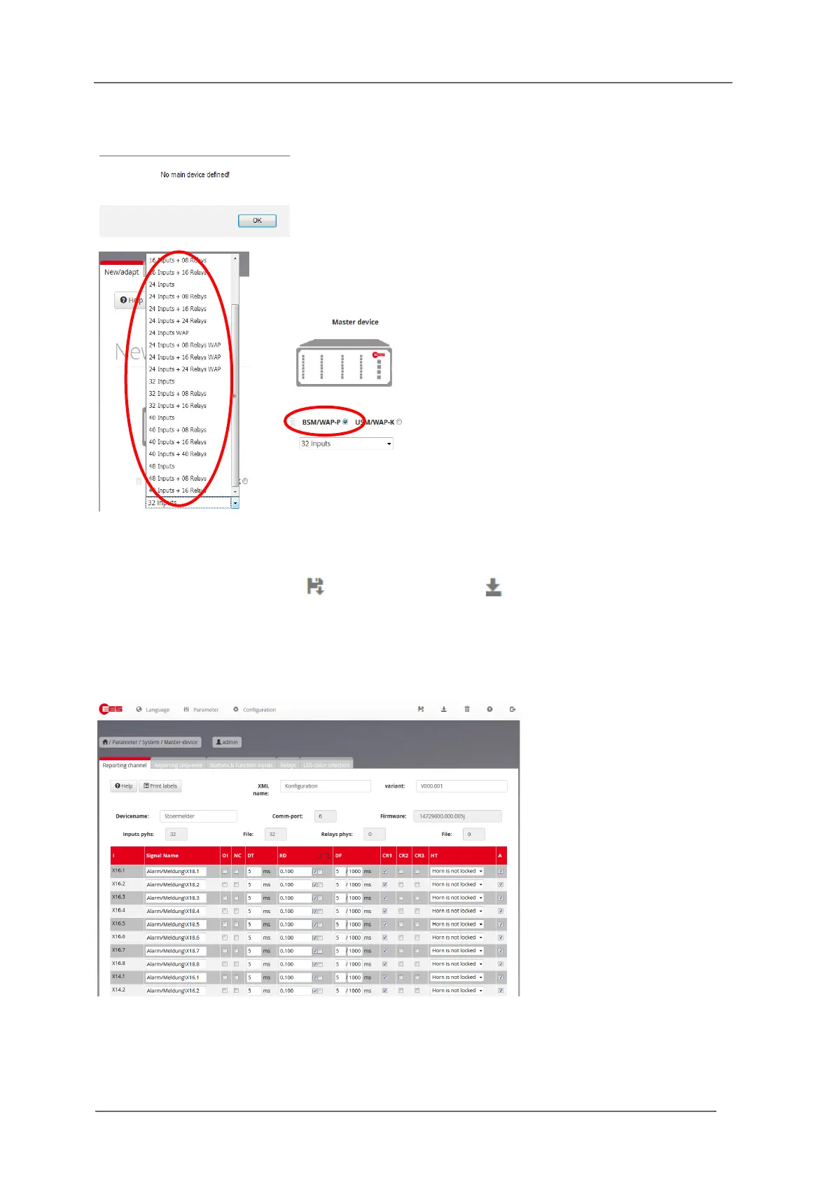 Next, the first page for the device parameterisation will be opened.