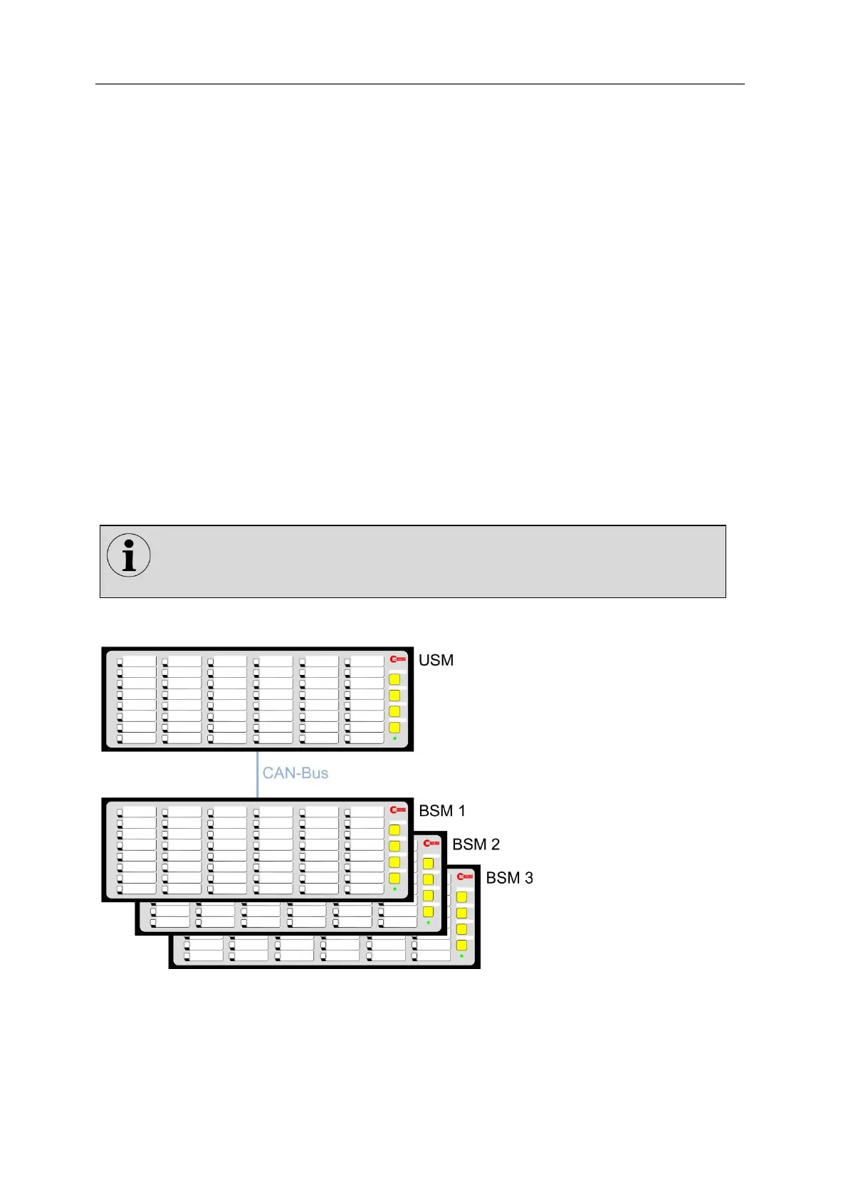 With cascading, one USM and up to 3 BSMs (BSM-C or BSM-P) can be combined to form a fault