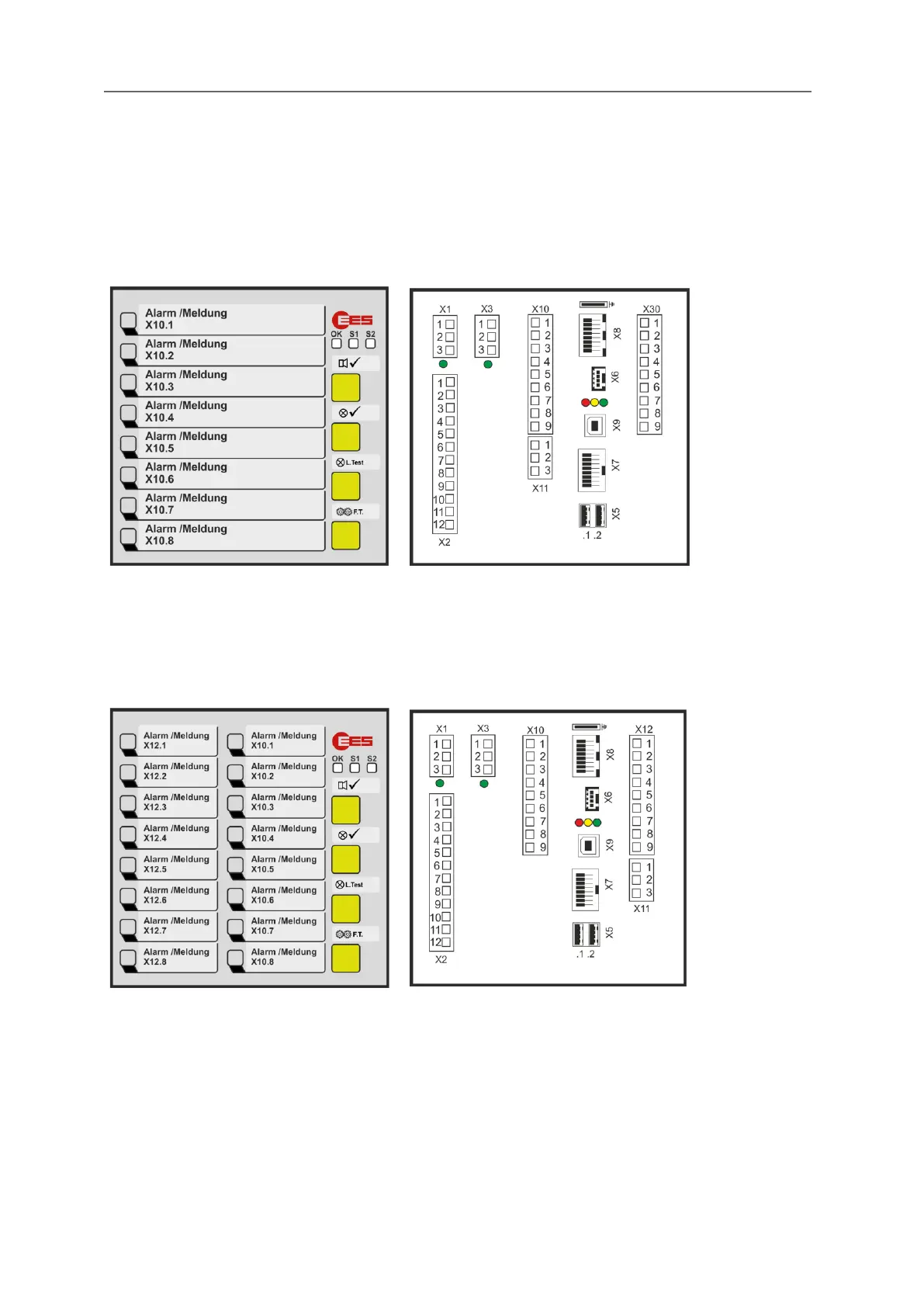 The following pages show the front and rear views of the fault indicators. Please note the arrangement
