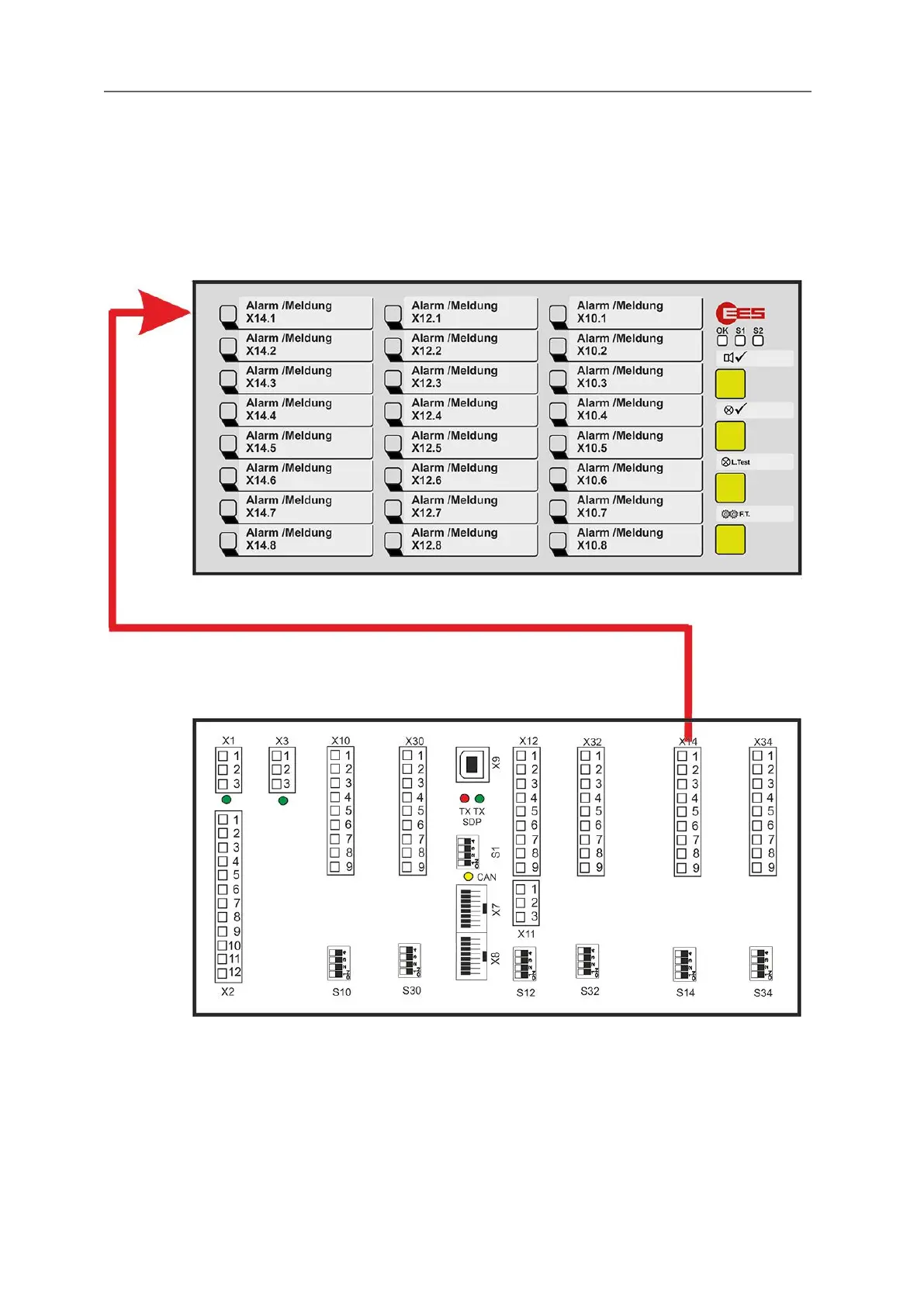 Fig. 3.30: Assignment between alarm input and LED display using the example of a USM 24