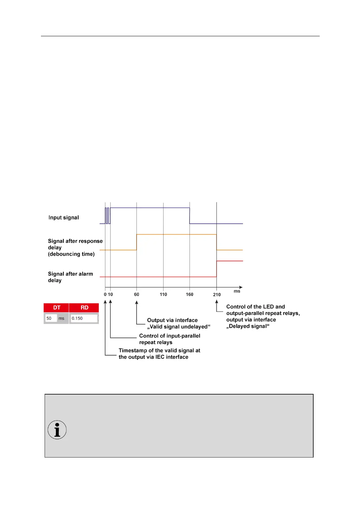 Fig. 5.15: Time diagram with a response delay of 50 ms and a alarm delay of 150 ms