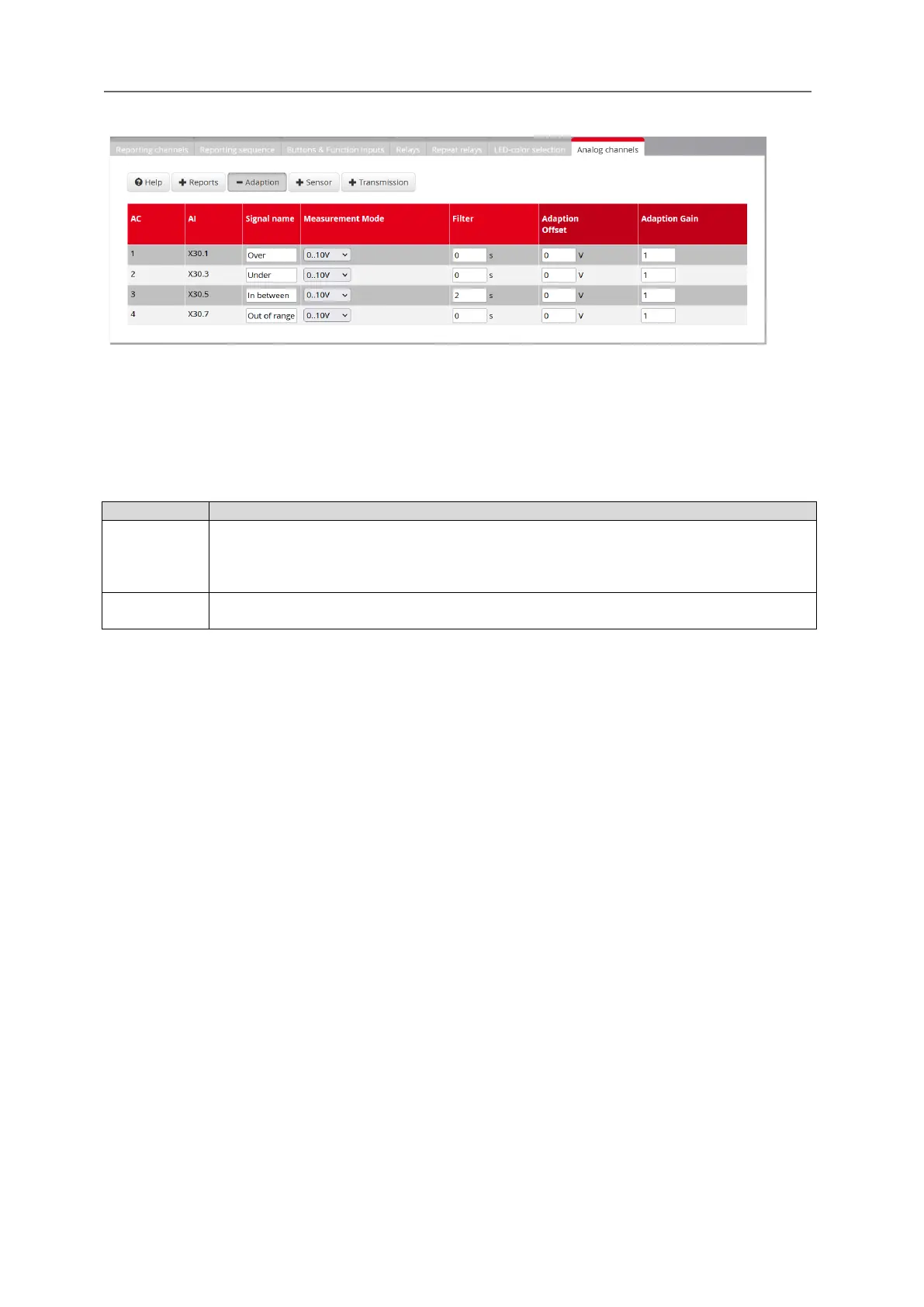 Fig. 5.22: Submenu analog channels - Dialog adaption